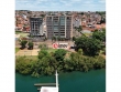 Sala ampla com piso de madeira e rodapés em granito com sacada integrada com 02 ar condicionado